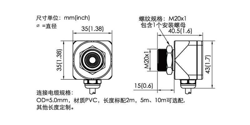 適合廣泛工業(yè)環(huán)境,鋅鋁合金外殼,高品質(zhì)光學(xué)透鏡,距離系數(shù)15:1
