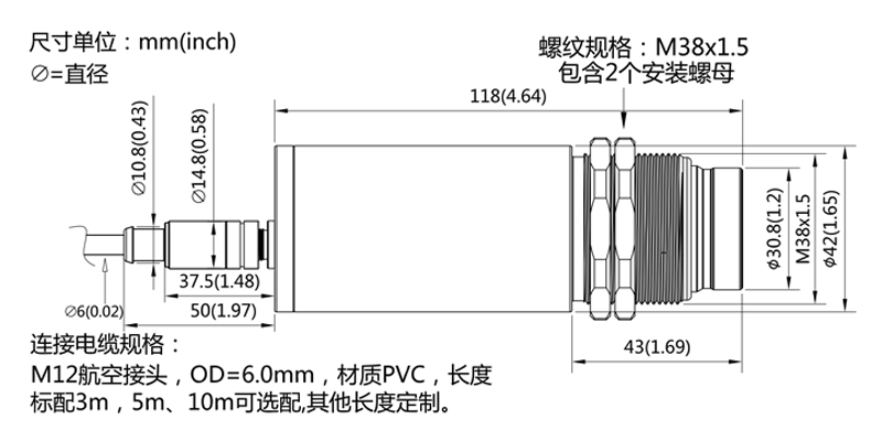 3m(標(biāo)準(zhǔn)),5m、10m(可選) |