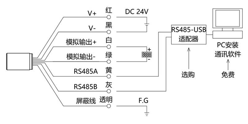 同時(shí)帶有4mA~20mA模擬輸出和RS485數(shù)字輸出